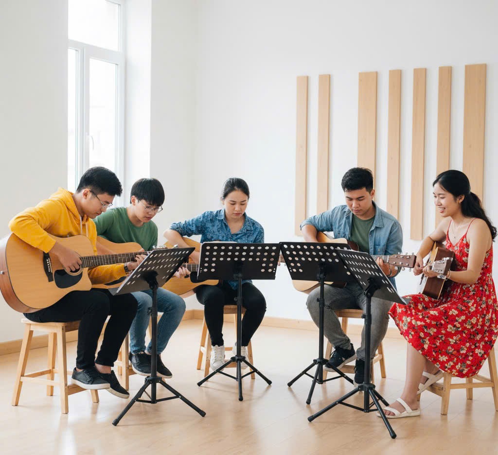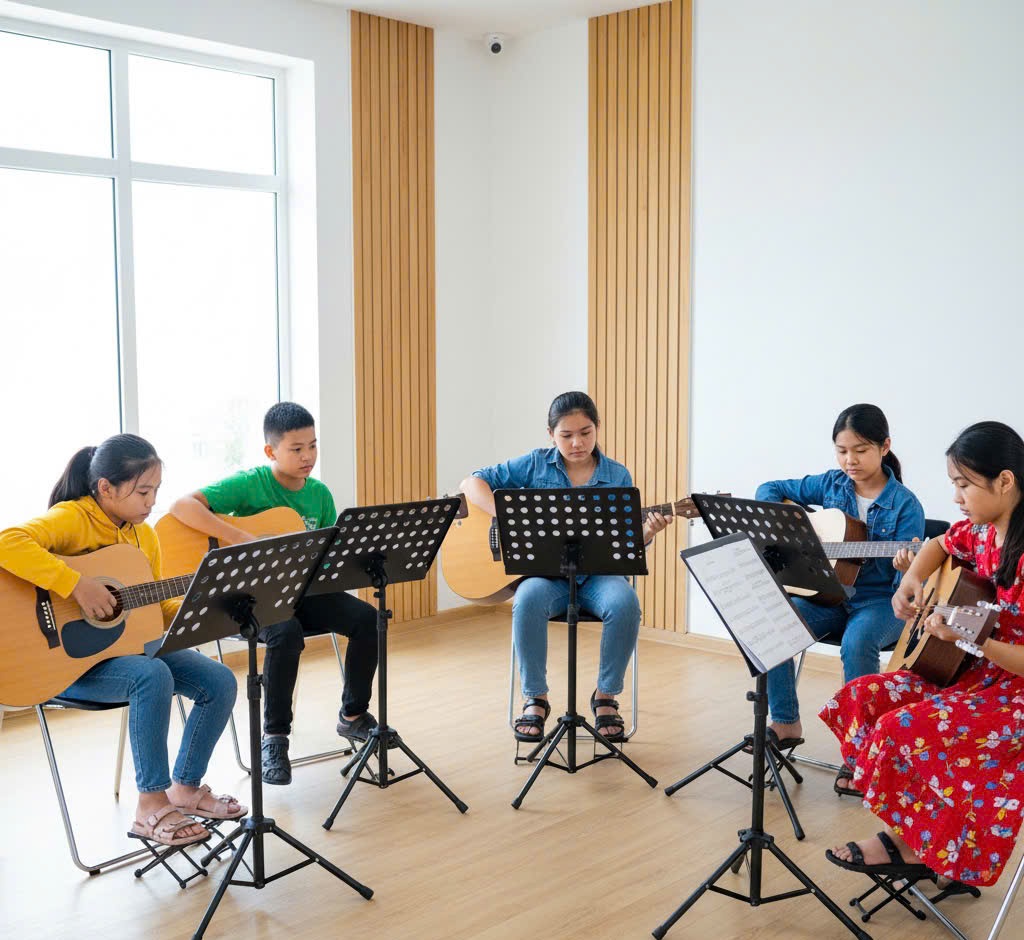 Các trung tâm dạy guitar tại Hòa Xuân Đà Nẵng thường cung cấp đa dạng các khóa học, phù hợp với mọi trình độ và lứa tuổi: